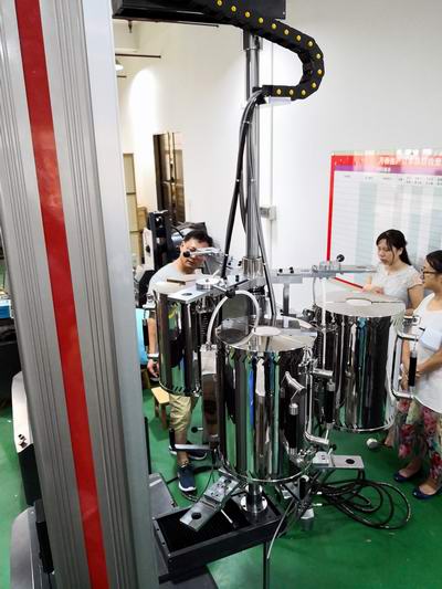 2018年8月2日,來自重慶金世利航空材料有限公司的張主任等一行三人蒞臨珠海,對前期訂購的九臺試驗機(jī)設(shè)備進(jìn)行了現(xiàn)場驗收。