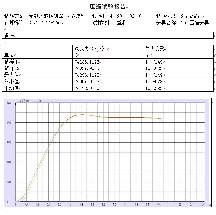 此次該客戶委托我司做的是無線地磁檢測器壓縮試驗(yàn),試驗(yàn)得出的相關(guān)數(shù)據(jù):